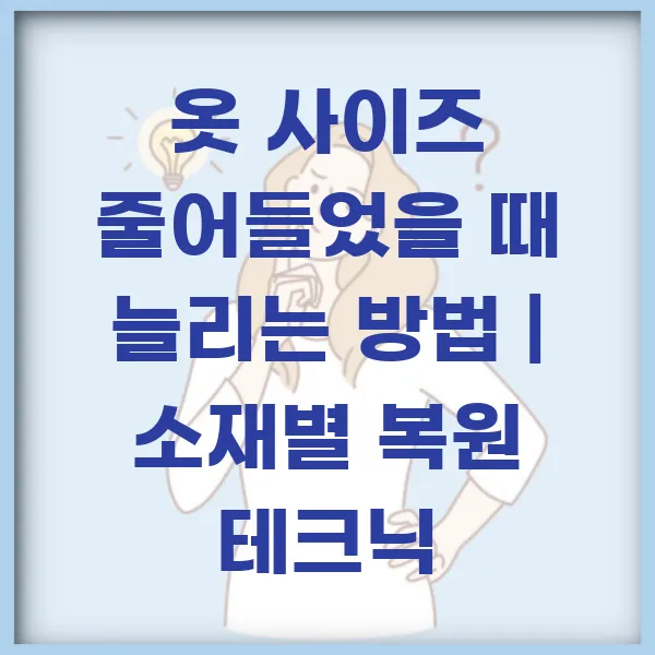 🔍 핵심 포인트: 줄어든 옷 복원은 섬유를 부드럽게 만들어 늘릴 준비를 한 후, 조심스럽게 물리적인 힘을 가해 형태를 되찾는 과정입니다.